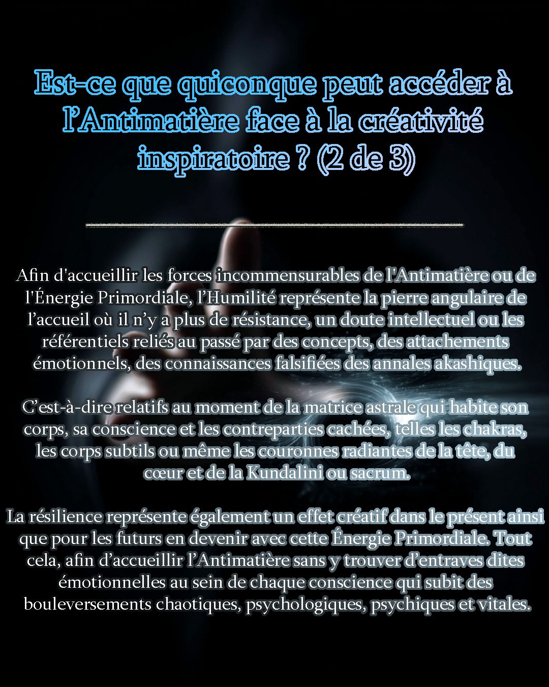C'est avec plaisir que nous publions des liens YouTube de la part Nassim HARAMEIN qui nous parle de ses inspirations instantanées et de son SAVOIR nouveau en matière de science à l'égard de la physique quantique.